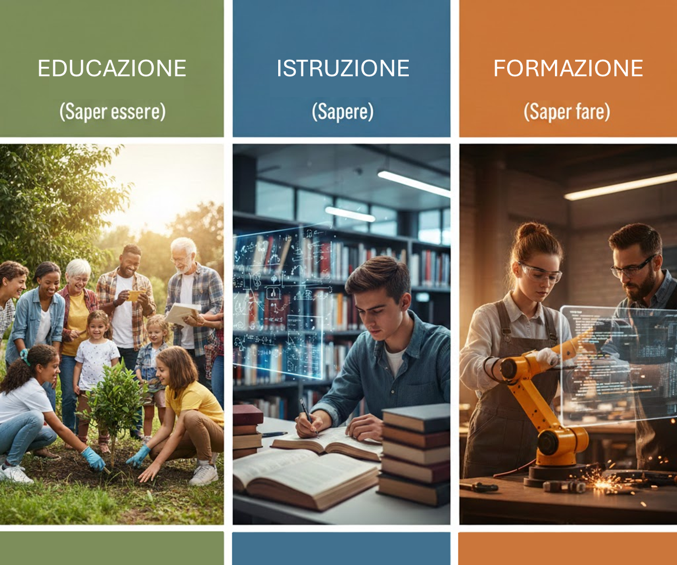 Prima di approfondire il tema dell'Assicurazione della Qualità nell'Istruzione e Formazione Professionale (IFP), è fondamentale chiarire la distinzione tra tre concetti spesso sovrapposti: Educazione, Istruzione e Formazione.