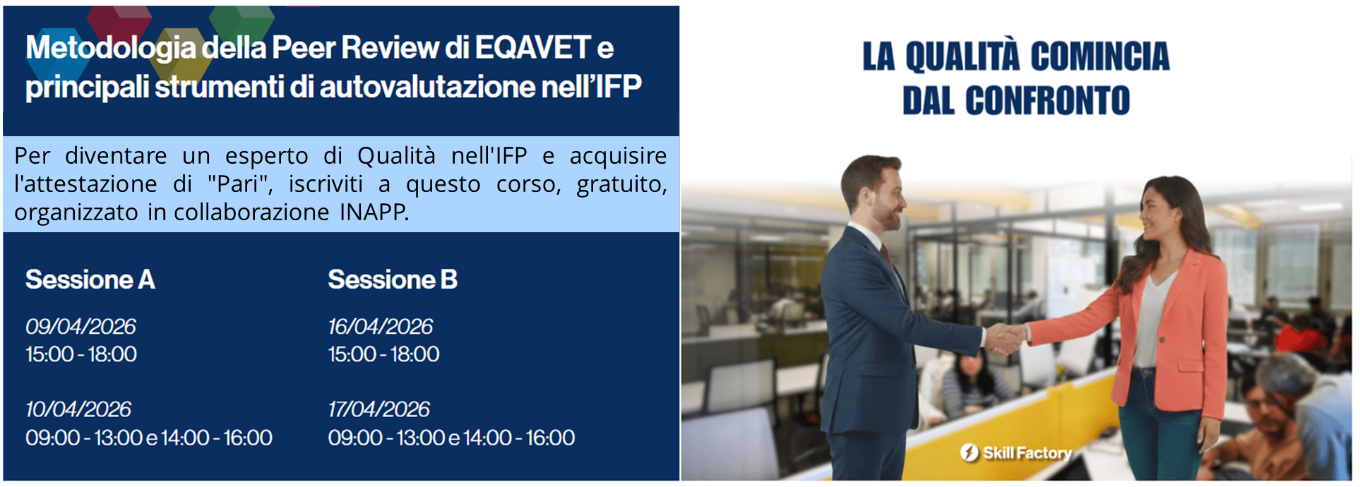 promuove il corso: "Metodologia della Peer Review di EQAVET e principali strumenti di autovalutazione nell'IFP".